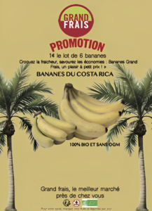 En cours de PAO, nous avons dû réaliser une affiche promotionnelle pour des bananes. Nous avons travaillé la mise en page, le choix des couleurs et la typographie afin d’attirer l’attention du public.